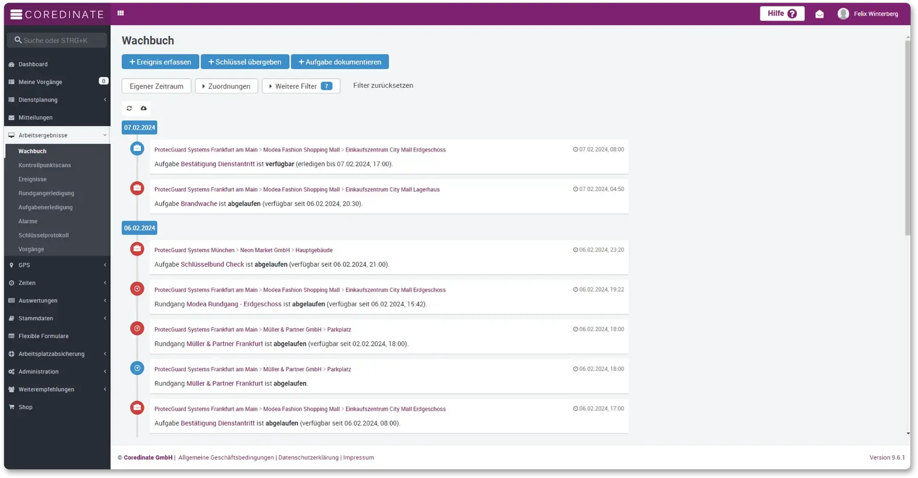 Die Aufgaben sind durch COREDINATE an die einzelnen Kontrollstellen gekoppelt. Vergessene Aufgaben gehören somit der Vergangenheit an. Wird der jeweilige Kontrollpunkt für die Wartungsaufgabe erreicht, erscheint die Aufgabe auf dem Bildschirm und kann verbindlich erledigt werden.